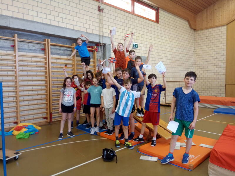 Die olympischen Spiele (auf dem Lampenberg) hat Frau Brenner für das Turnen vorbereitet.