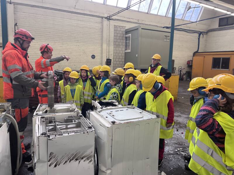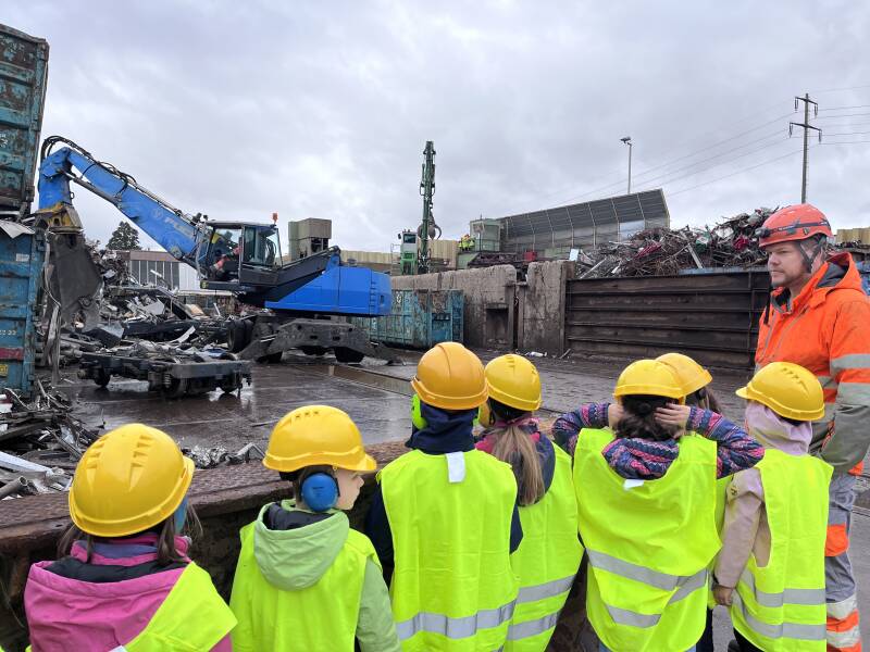 Am Morgen haben wir uns normal in der Schule getroffen. Wir sassen in den Morgenkreis, dann sind wir raus gegangen zur Bushaltestelle. Wir mussten drei mal den Bus wechseln bis wir in Kaiseraugst auf dem Schrottplatz angekommen sind. Wir haben gesehen wie eine riesige Maschine ein Auto kaputt gemacht hat. Dann wurde das Auto durch eine andere Maschiene durchgelassen und es kamen viele kleine Teile raus. Es war sehr cool und wir haben ein leckeres Mittagessen gehabt.