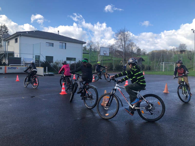 Die Mittelstufe bereitet sich mit Fahr- und Bremsübungen für die Verkehrsschulung der Polizei in Hölstein vor. Auch nach den Ferien werden wir den Umgang mit dem Velo und dem Verkehr üben. Wir hoffen auf weniger Aprilwetter ;)