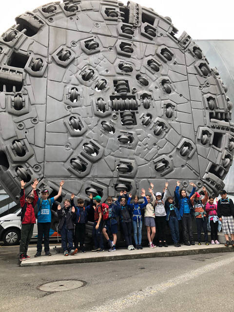 Wir haben den Bohrkopf der Neat-Basistunnelbohrmaschine angeschaut und ein Klassenfoto gemacht.